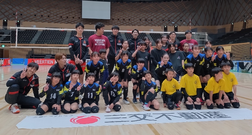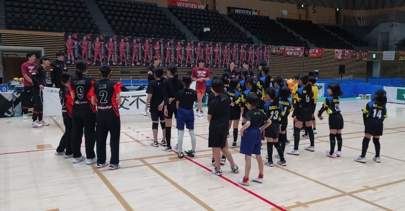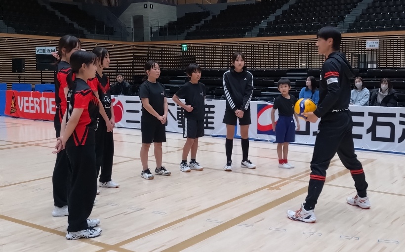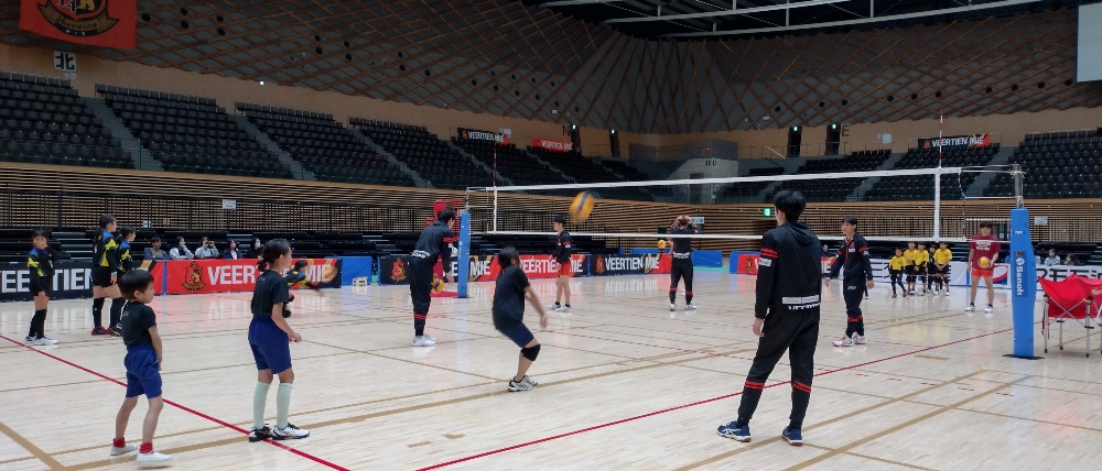 また、試合後はヴィアティンの選手によるバレーボール教室に参加しました。プロの選手からのパスやアタックはどう感じたでしょうか。また練習に活かしてくださいね。
