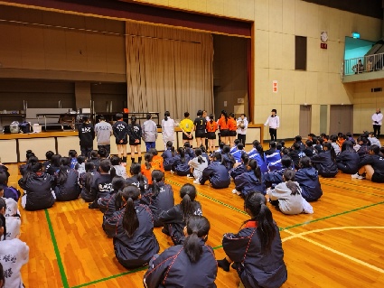 また、試合後はヴィアティンの選手によるバレーボール教室に参加しました。プロの選手からのパスやアタックはどう感じたでしょうか。また練習に活かしてくださいね。