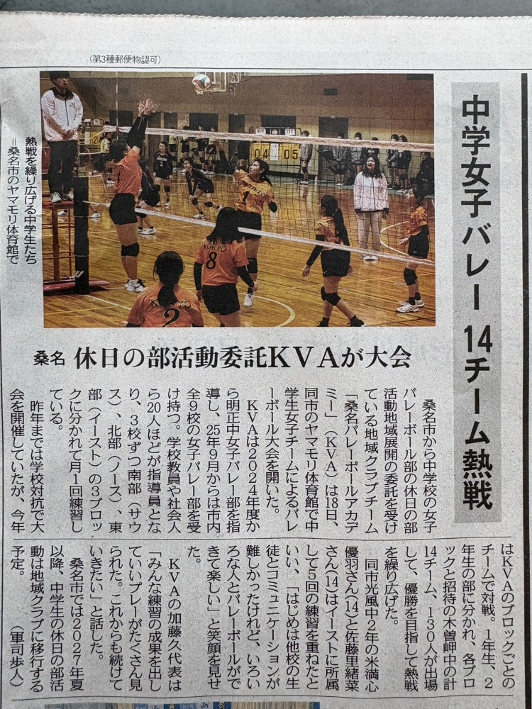 『桑名バレーボールアカデミー(KVA)』は、バレーボールの競技歴や指導歴がある桑名市内の教職員が中心となり、2021年4月に発足したバレーボール教室です。