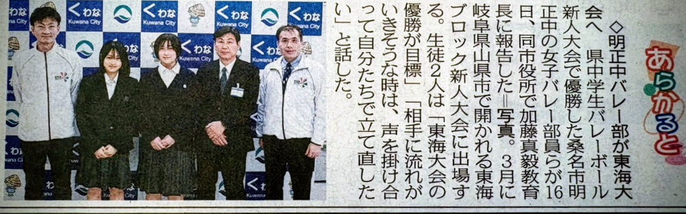 2026年1月24日-25日に開催された「第54回三重県中学校バレーボール新人大会」において、KVAが連携する明正中学校バレーボール部が優勝し、三重県No.1に輝きました!