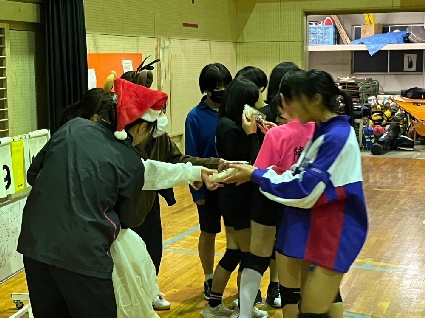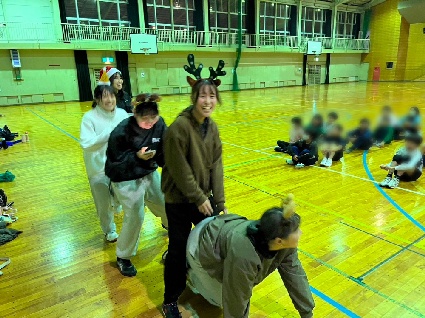 12月16日と20日は、各クラスの年内最後の練習日でした。スタッフ扮するサンタとトナカイから、お菓子をプレゼントしました。
